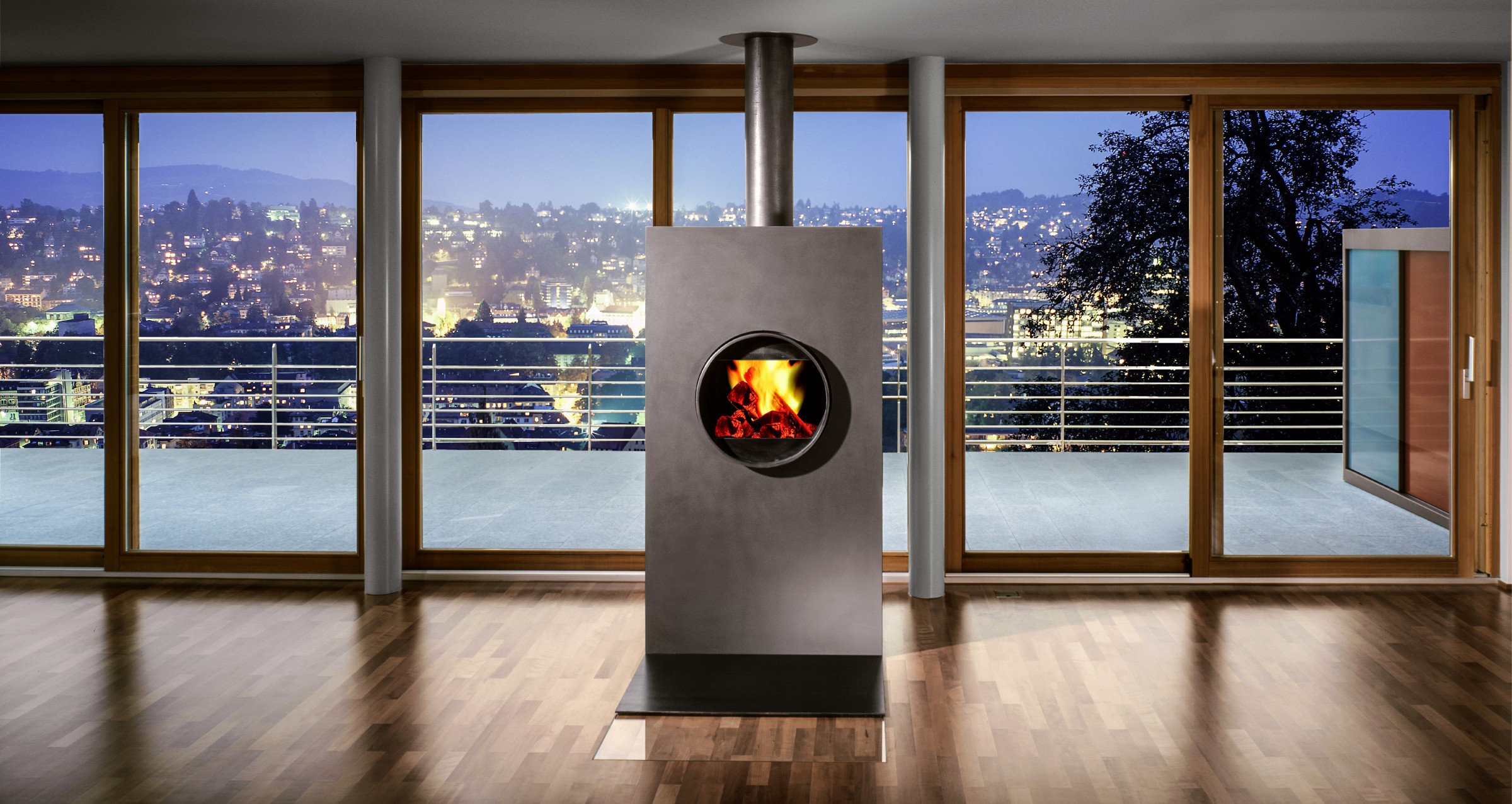 Wenn man einen Raum betritt mit einer Rutz Feuerstelle darin, spürt man sofort die Ausstrahlung dieser skulpturhaften Werken. Für das Bildkonzept stand für uns die Materialität im Vordergrund und mit der perspektivischen Linienführung zentrierten wir die Bildenergie auf den Mittelpunkt: das Feuer.