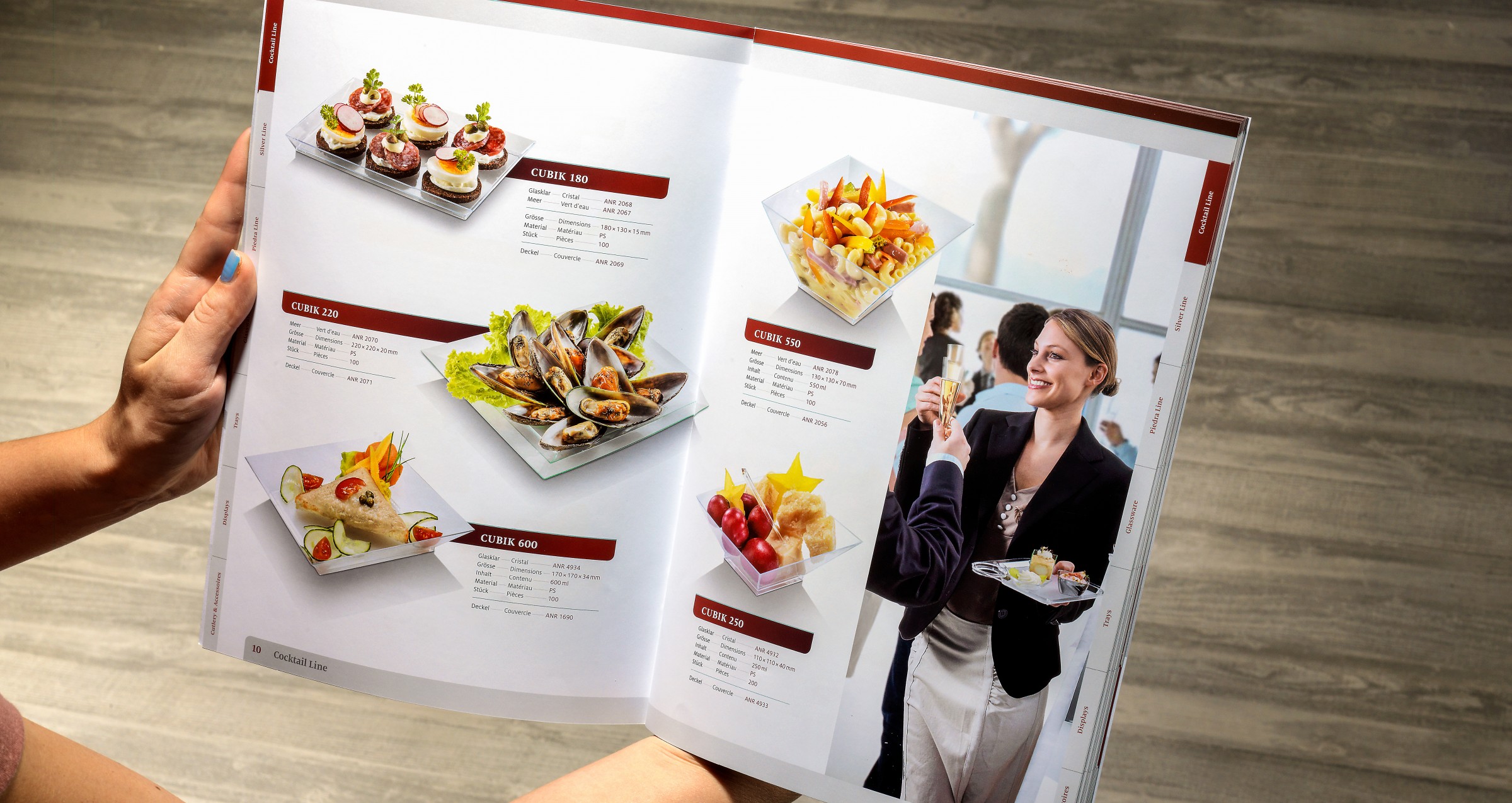 Die Produktewelt von Designline besteht aus äussert hochwertigen und in- novativen Kleinartikeln für die anspruchsvolle Foodpräsentation, vorwie- gend im Cateringbereich, aber auch in der Thekenpräsentation. Die knacki- gen Produktstimmungen mit raffiniertem Foodstyling auf kleinstem Raum und einem sehr hochwertig gestalteten Katalog unterstützen die Präsentation im professionellen Umfeld.