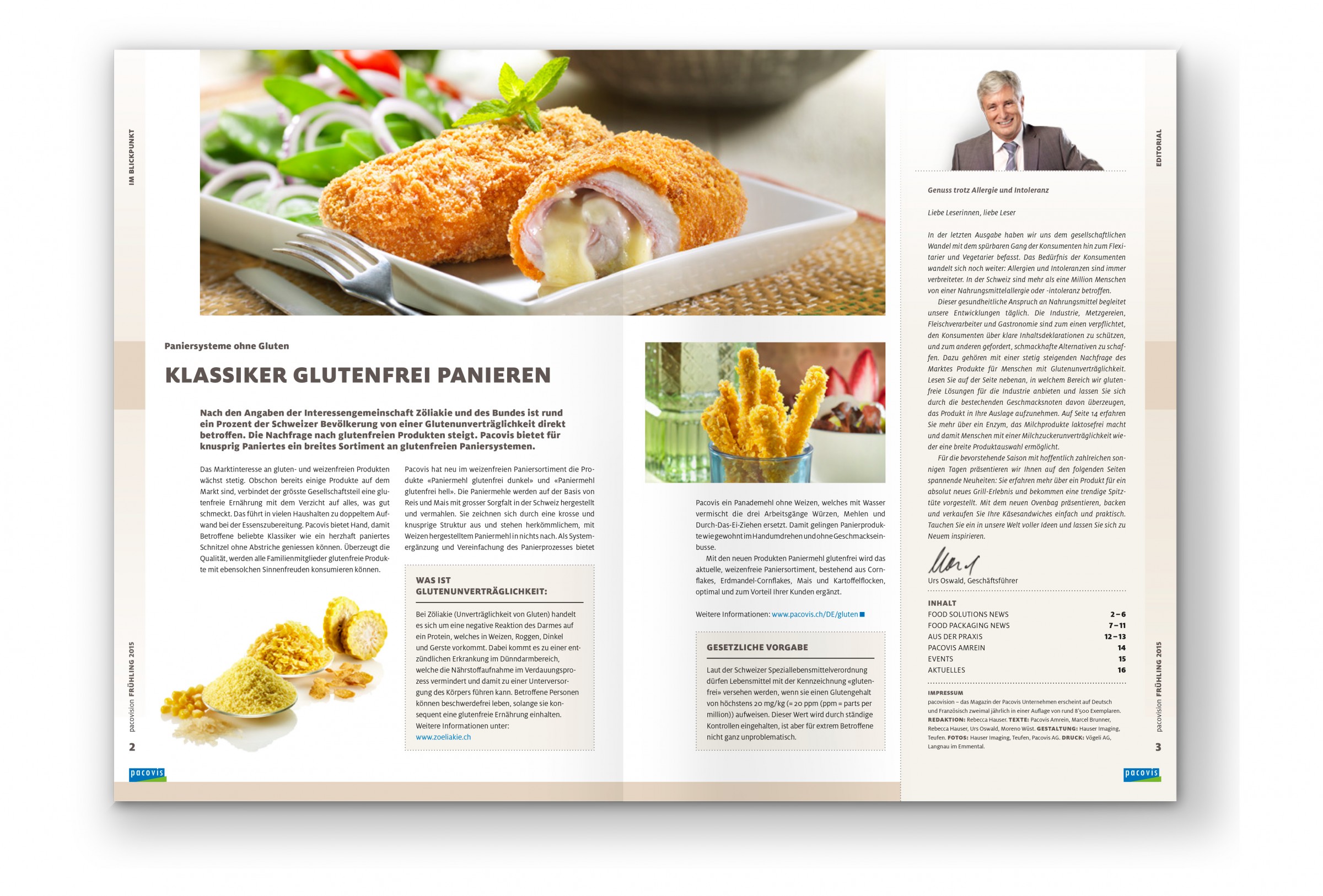 Halbjährlich liefert Pacovis all Ihren Kunden ein Magazin mit Neuheiten, Trends, Entwicklungen im Foodbereich und redaktionellen Beiträgen aus der Welt des Würzens und Verpackens. Die Aufgabe ein Magazin zu gestalten, das den typischen Mood der Firma Pacovis spürbar macht, klar und trotzdem lebendig bleibt, informativ ist aber nicht langweilig, aus der Firma erzählt aber nicht selbstbezogen erscheint, realisieren wir in enger Zusammenarbeit mit dem Pacovis Marketingteam alle sechs Monate. Die knackigen Texte stammen aus der Feder von Andreas Steiner.